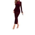 Elegant And Fashionable Slim Fit Slit Hip-Wrapped Long-Sleeved Velvet Dress Wholesale Womens Clothing N3824121200046