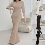 Be the first to review “Sexy Slim Round Neck Solid Color Long Sleeve Dresses Wholesale Womens Clothing N3824080700060”